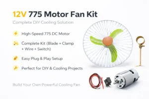 775 Motor 12V DC Complete Fan Kit with Clamp, Safety Net, Switch & Wire