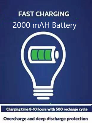 The bulb provides up to 3 hours of backup, depending on usage and battery charge.